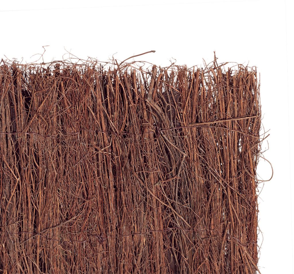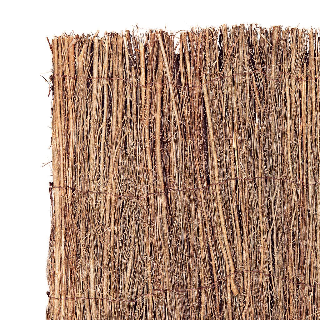 BREZO + GEOTEXTIL + BREZOEsta ingeniosa malla de ocultación patentada consta de 3 capas: 2 capas de brezo fino con una tela no tejida marrón en el medio. El Triobruc te brinda una intimidad perfecta (ocultación de 100%) en tu jardín logrando proporcionarte el aspecto estético y tradicional del cercado con brezo.