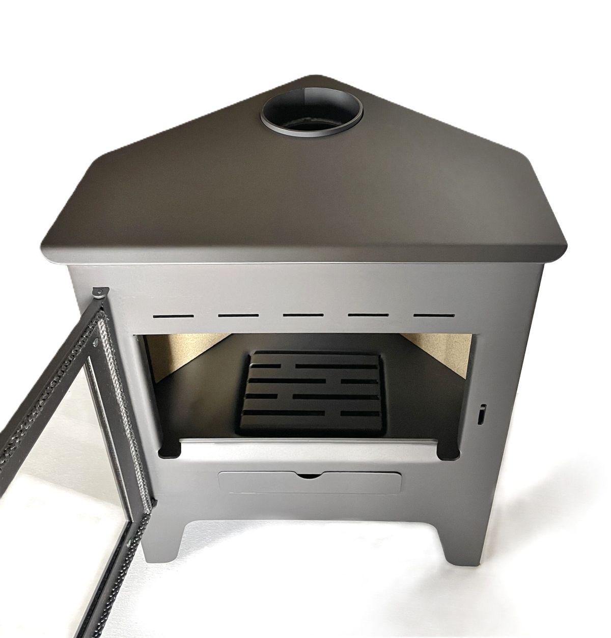 Estufa de leña rincón R6 de J. PanaderoEstufa de leña esquinera modelo R6 de Juan Panadero con una gran potencia calorífica. Fabricada en acero de corte clásico, dotado de una doble combustión que le induce una alta eficiencia.racita, puerta acristalada con sistema de cristal limpio . La estufa R6 es una apuesta segura para su hogar, uno de los mejores modelos del mercado relación calidad/precio.